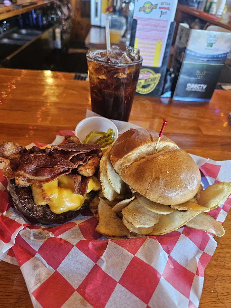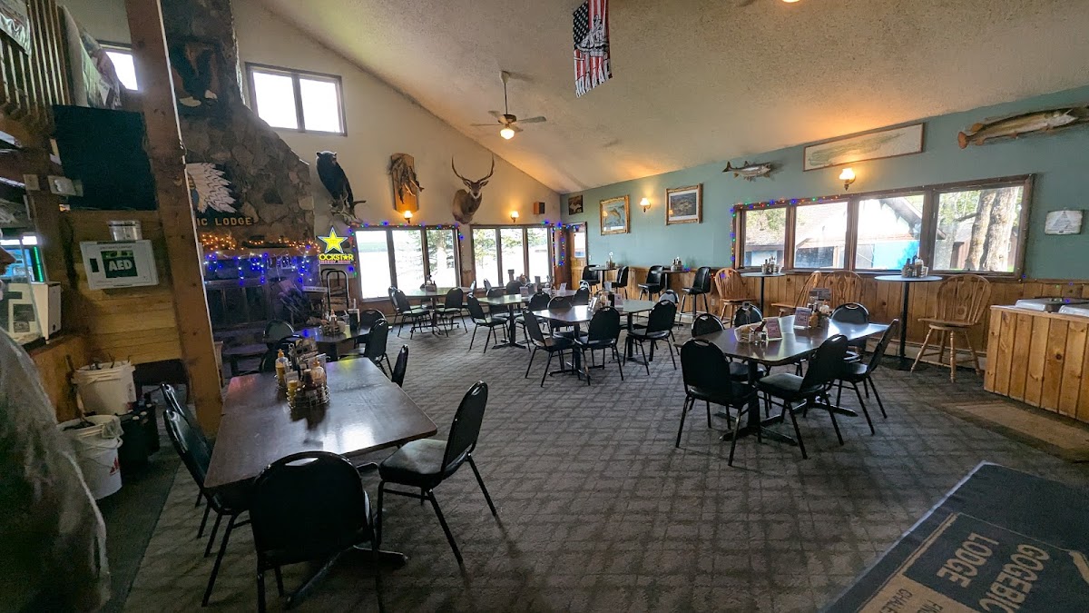 We were staying next door to the lodge in a rental unit. We walked over for dinner one evening. Cool bar with what seemed like a bunch of locals. We sat at bar. Lady ran the bar and waited on all the people in the dining room. She did a good job. I went with the Walleye sandwich and my cousin had the olive burger. Both of these are items that we are unfamiliar with down South. The fish sandwich was large but just average. Pretty sure fish was frozen. My cousin loved her olive burger and she gave me a bite and it was stellar. We got the onion rings for a starter and they said they were hand-breaded with a local lager batter. They were fantastic. You can play Keno and buy lottery tickets at bar. Depending on your seat you can have one heck of a view.